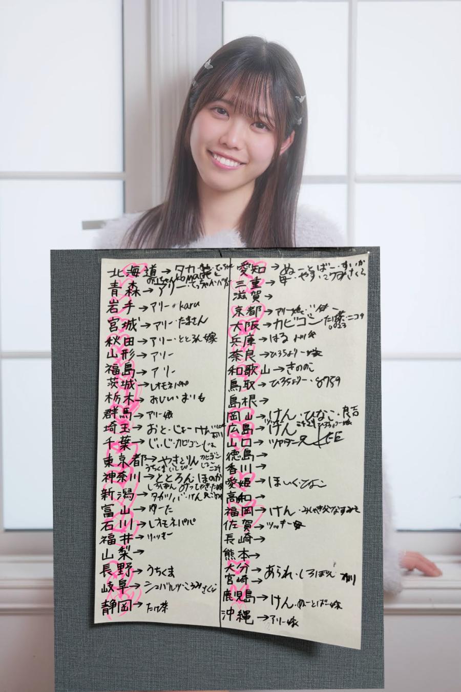 都道府県チャレンジ❣️ 急いで書いてたから字やばいのは秘密🤫😂 あと 山梨、滋賀、島根、徳島、香川、高知、長崎、熊本、宮崎‼️ ラスト配信23時30分からサンタコスでスタート❤️🔥(1)