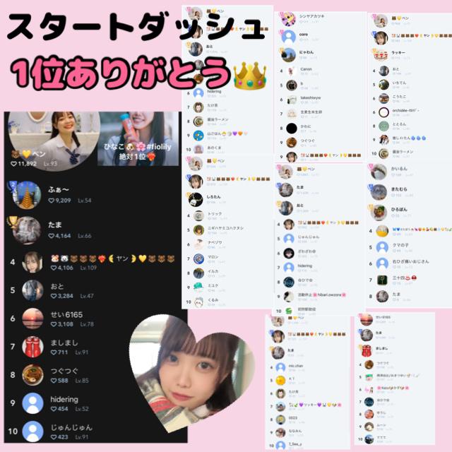 おつひな🌸スタダ1位ありがとう🎊 嬉しすぎて泣かないって決めてたのに泣いちゃった🥹 順位変動が激しくて本当はずっと緊張しっぱなしだったんだけど皆んなが沢山のチアとコメントで盛り上げてくれて頑張れてる🙌 シールチャレンジも沢山デコデコしてくれてプリンセスひなこになれたかな👸❓ これからも1月3日(水)に向けて楽しい企画配信するからひなこの事もーっと好きになってね❣️ひなこの事を好きな人が好き💖 最後の1分まで全力で🥰🙌 また明日からも頑張る‼️ チアチアで応援してくれると嬉しい💕(1)