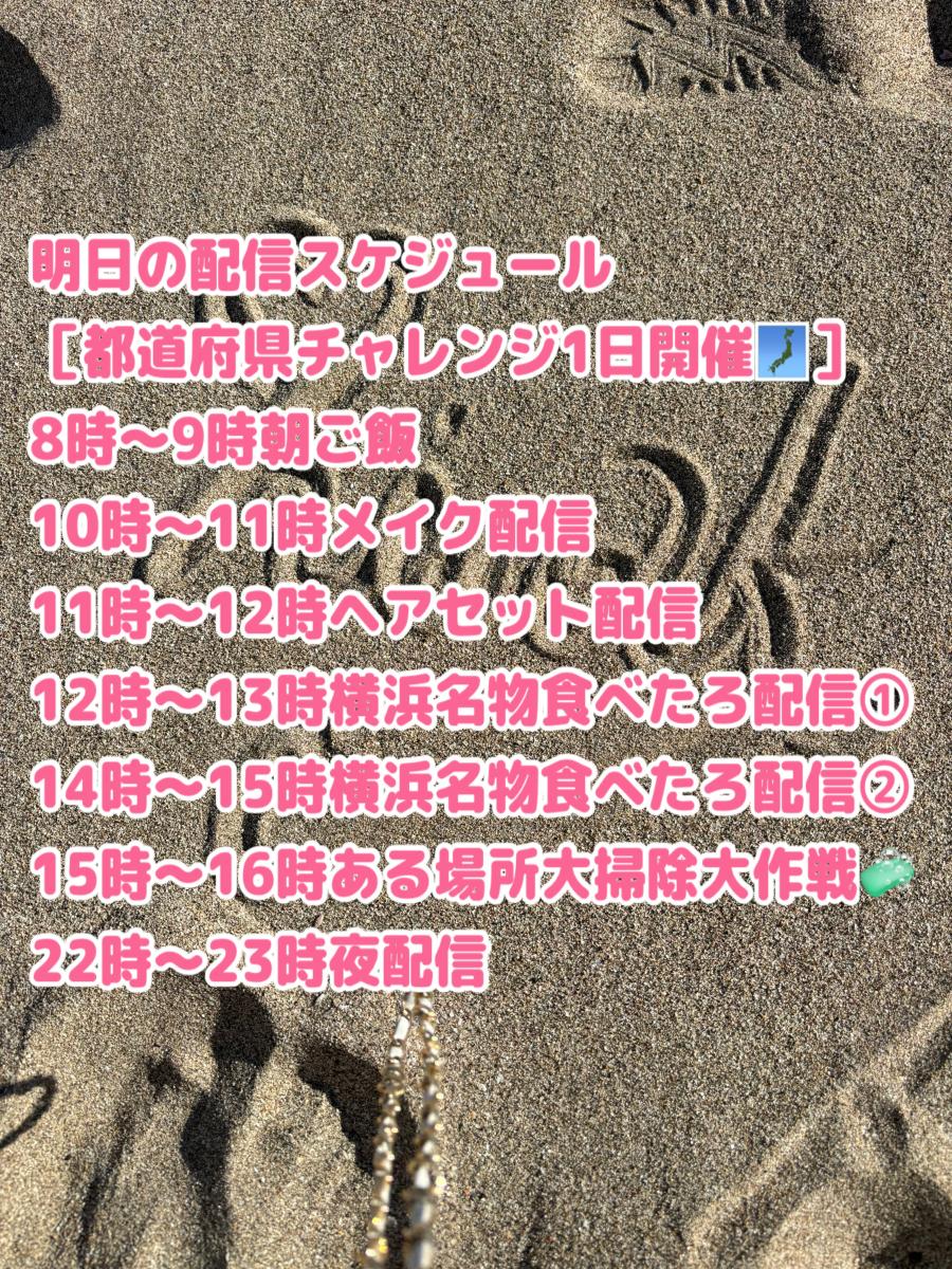おつひな🌸 本気勝負まで残りあと5日❤️🔥 明日の配信スケジュール [都道府県チャレンジ1日開催🗾] 8時〜9時朝ご飯🥣 10時〜11時メイク配信🤪 11時〜12時ヘアセット配信👩🏻🦱 12時〜13時横浜名物食べたろ配信① 14時〜15時横浜名物食べたろ配信② 15時〜16時ある場所大掃除大作戦🧼 22時〜23時夜配信🌙 都道府県チャレンジしながら1日配信するよ〜💖 会いに来てねん❣️(1)