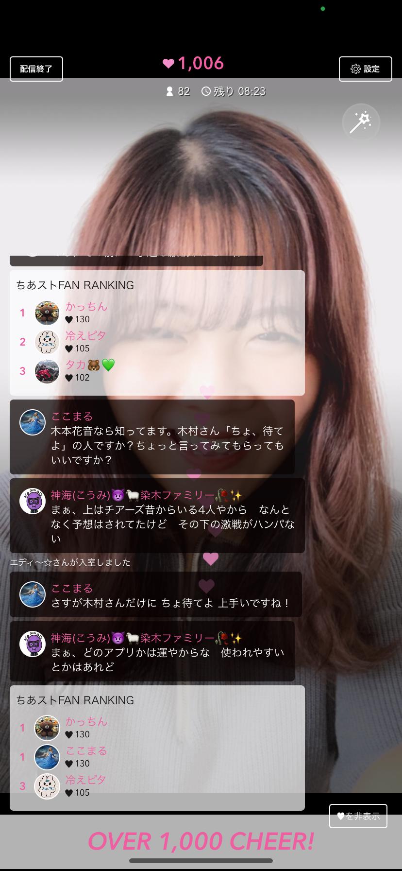 お昼配信+追加配信有難うございました🙇🏻♀️ 次は18時から始めますのでお待ちしております😢 本日予選最終日、必ず決勝にもって行ってその後は1位しか目指しませんので!応援お願いします🥺📣 そして本日も1000CHEER超えの瞬間、、 本当に有難うーーーー( ; ; )♡(0)