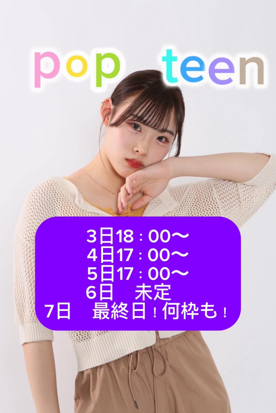 pop teen予選終了まで4時間きりましたっ! 予選本当にありがとう😭 今日は絶対に決勝進出しますっ! ポイントは温存でお願いいたしますっ!🙇📣 8時から10時予選最後っ!配信つけますっ!💗(0)