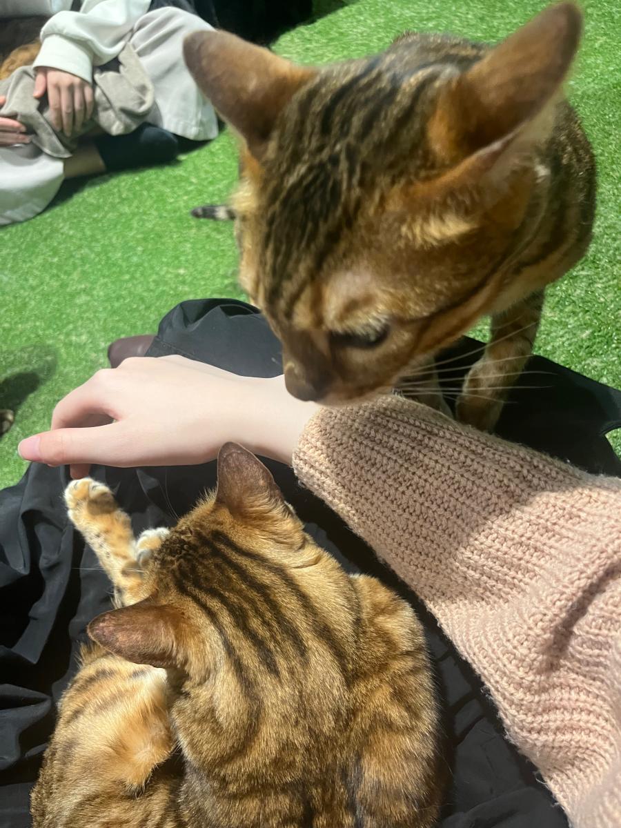 こんにちはー!🐰🐰 今日は韓国の実家から友達が遊びに来てくれて、猫カフェに来ましたー!🥰🥰 膝に乗ってくれてすごくしあわせです!!😭💕💕 韓国は日本より夏休みが1ヶ月早く始まるので最近は高校時代の友達にもたくさん会えて嬉しいです!🥰🥰 みなさんも週末楽しんでますか??! 週末もご飯はちゃんと食べてください!!😋(4)