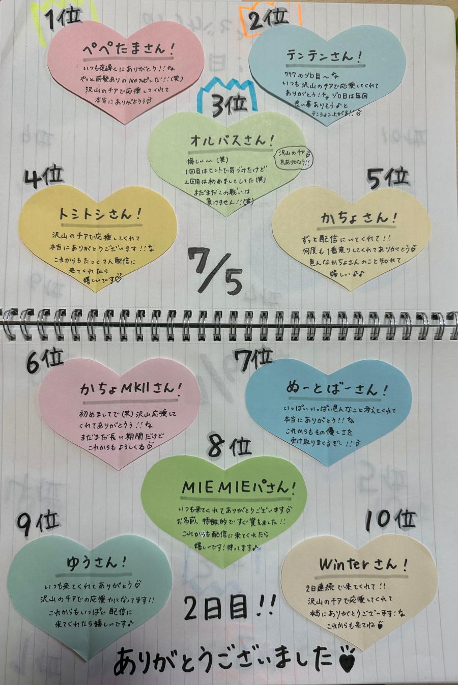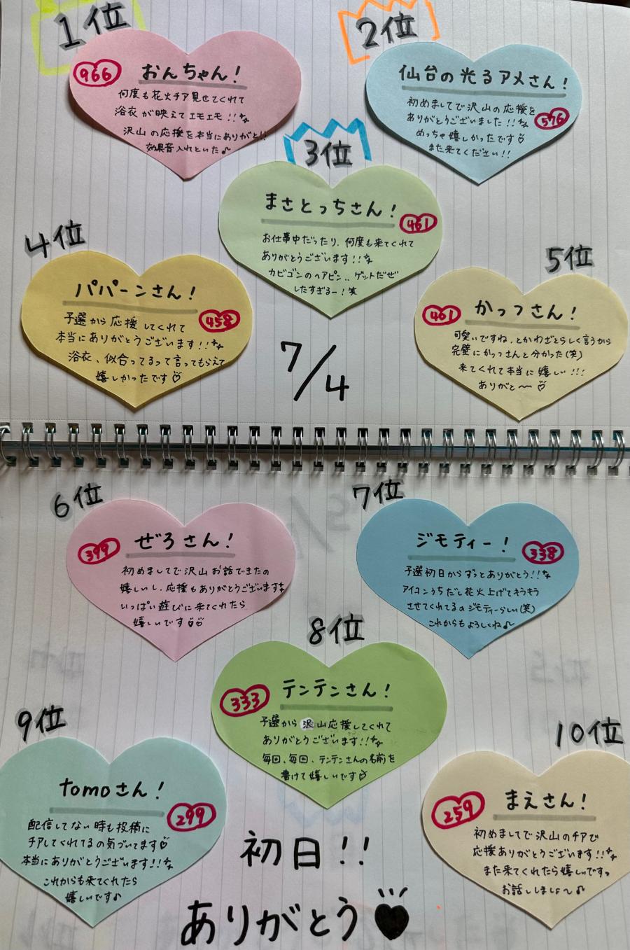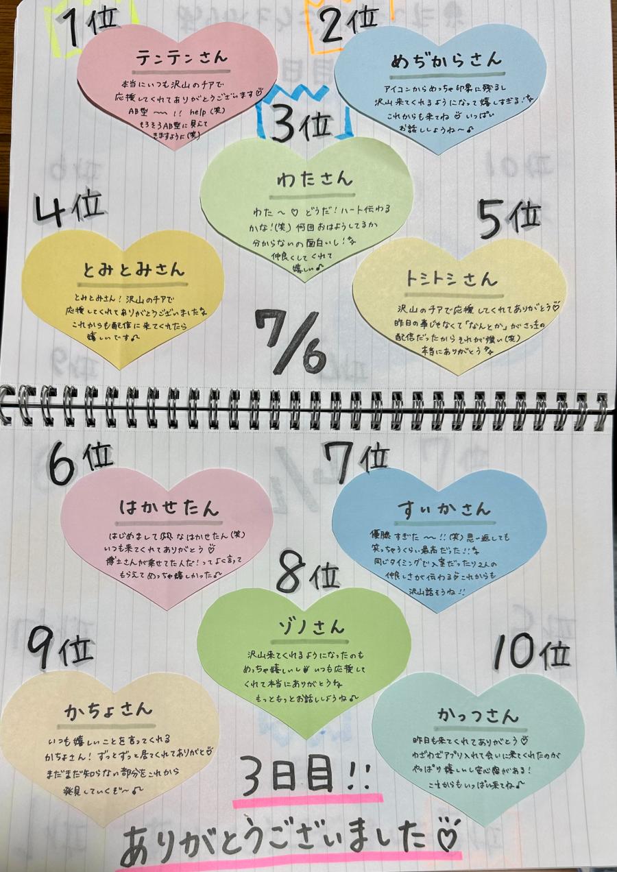 4日目のランキングです💖 毎日本当にありがとうございます!! 夜配信は19時からになります🙇🏻♀️ 今日の画像はぺぺたまさん(っ'-')=͟͟͞͞💖 2回目の1位!!ありがとう😭(0)