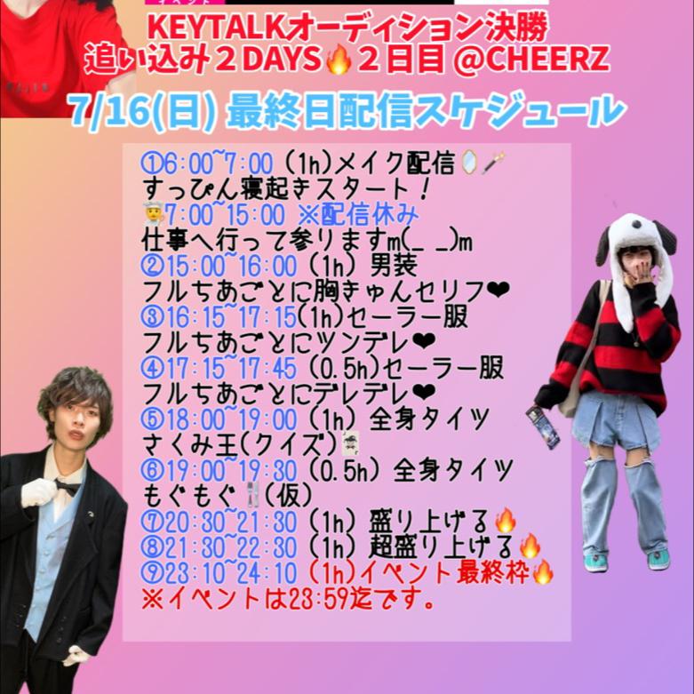 こんばんは! 本日23時から配信します! ラストスパート金土日 企画や配信スケジュールを 事前に練って書き出し、投稿します! 特に最終日前日の15日(土)は 丸一日タイムテーブル通りに配信します! みんなも最後楽しめるように 沢山の人に来てもらえるように スペシャルないろいろを考えてる! ラスト3日間について またアナウンスいたします- ̗̀📢 今日もありがとう🤲 寝る前のCHEER使い切り 無料ポイントGETも あと3日間 よろしくお願いいたします!(2)