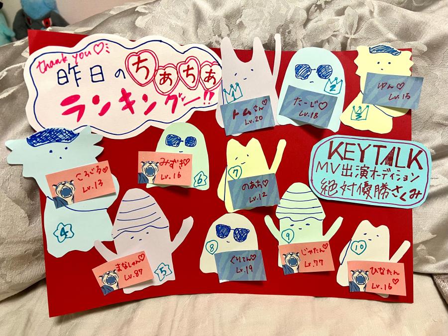 きのうのちあちあランキングでんっ❤️🔥 みなさん、ありがとう♡*:.。. o(≧▽≦)o .。.:*♡ KEYTALKさんのキャラたちで 作ってみた😼😻😽😺配信の壁に貼る😼😻😽😺 このあと23時過ぎからちあスト!(配信前にこれ作りたくて、、) あらもうこんな時間😱急いで配信準備する💄🏃♂️ 遅い時間なので、みんな無理せずにねーっ!(3)