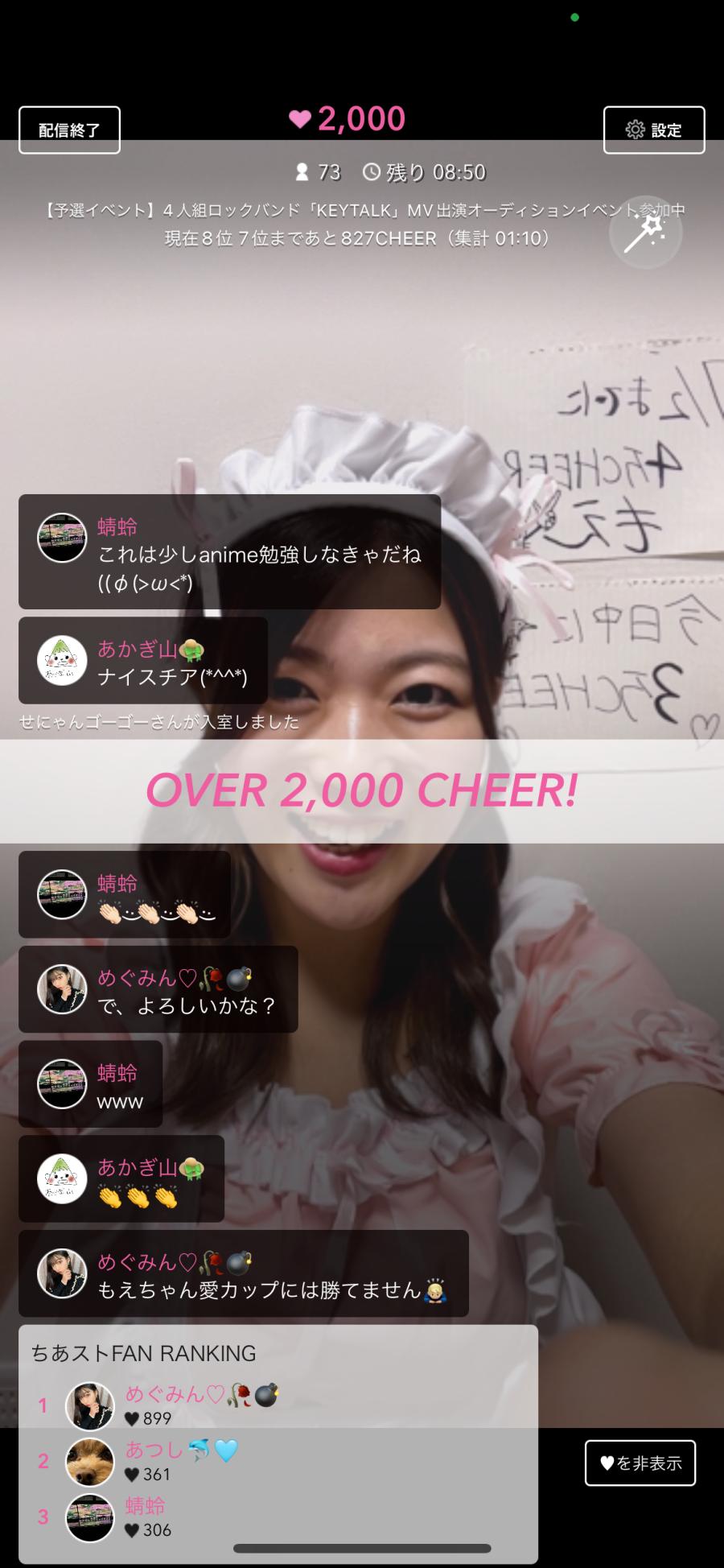メイド服配信、本当に大好評で、、恥ずかしかったけど着て良かったと本当に思います😭😭😭🤍笑 メイド服配信は3時間連続で配信したのですが、ラストは2000CHEER超えしました✨👏🏻✨👏🏻✨👏🏻✨👏🏻 応援してくださった方、CHEERたくさんしてくださった方、皆さん本当にありがとうございます🥹 愛です❤️ シャワー浴びてメイク落としたらツインテールのまますっぴんパジャマ配信するので、まだ起きてるよ〜って方は一緒に夜更かししちゃいましょ🫠🌃(0)