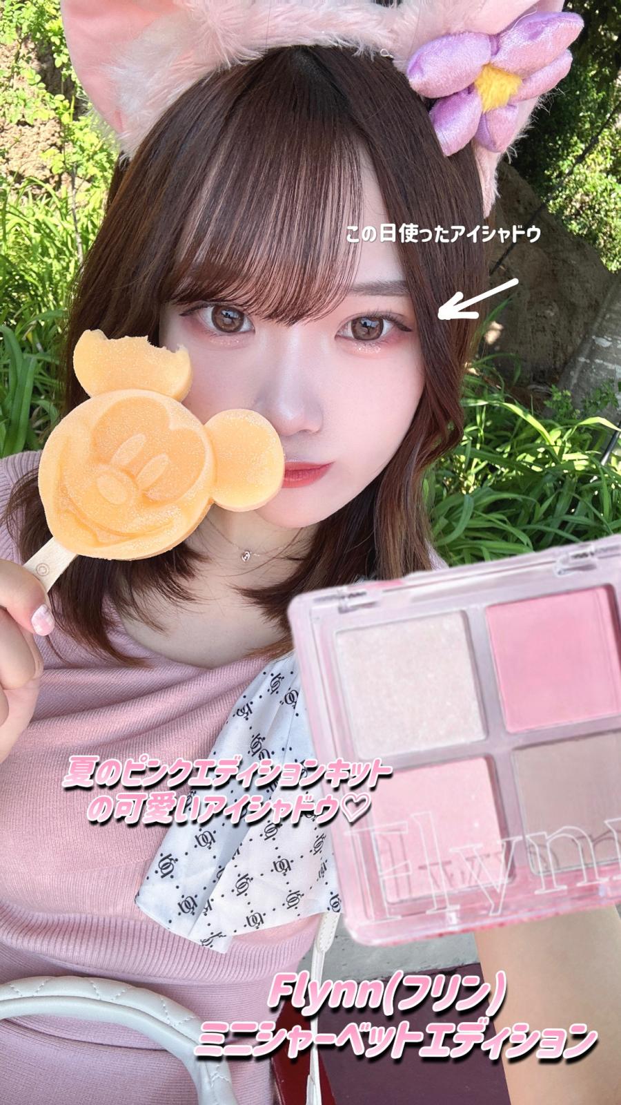 【Flynn様の魅力をお伝え💗 ディミュアアイシャドウパレット02 フローズンシャーベット】 (配信までの間投稿チアチアにて応援してくださると幸いです🙇♀️) こんののです☺💓 本日はFlynn(フリン) ミニシャーベットエディションのアイシャドウパレット02についてです✨ ディズニーに行った日、上まぶたにピンクカラー、下涙袋にも薄いピンクカラー、上まぶた、涙袋にラメを入れました^⸝⸝ɞ̴̶̷ _ ∩⸝⸝^♡ まずこの可愛いピンクカラー🥲 リーナベルとピンクのワンピースで行ったの(0)