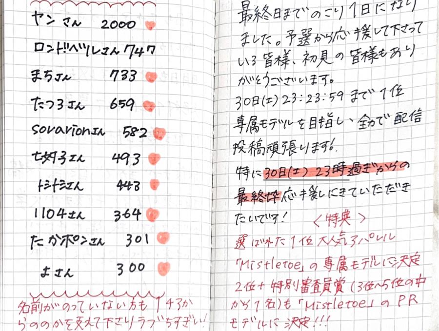 こんばんは🌙*゚ ミソルト専属モデル決勝参加中ののかです🕊〜♡(• •⑉)! 今日も皆様にお会いできるのを楽しみに配信しておりました( ु ›ω‹ ) ु 大学の授業を受けている時も今日も配信して皆様とお話できるのが楽しみだな~と思っていました...笑(,,- -,, ) 配信を開くといつも温かな応援をしてくださる皆様のおかげで毎日の配信が楽しみになっております🥰 コラボ配信や、配信に来て応援して下さる配信者の皆様にも沢山助けられております( ; ; ) 感謝してもしきれません... (0)