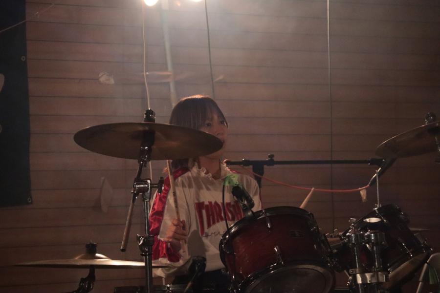 初めてのドラム叩いてる写真!!!🥁 軽音楽系の部活でドラムやってるって自分のこと紹介してたのにドラム配信とか動画投稿したりとか出来てなかったの悔しいので、写真探してきました!!!! ドラム叩いてる時ってどうしても動いちゃうからあんまり写りのいい写真無くて探すの大変でした笑笑 今年の春ぐらいの学内ライブの時の写真です❕ いつかドラム叩いてる所もお見せ出来たらいいなぁ〜〜💭(1)