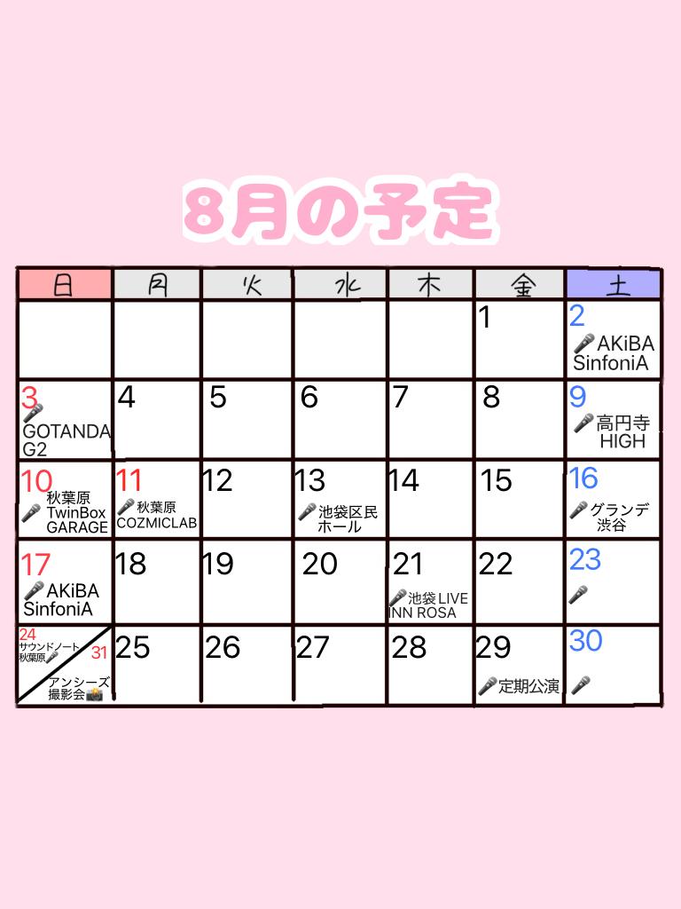 8月の予定です✎* 初箱が多くて楽しみだね! 31日(日)はおそらくアンシーズ撮影会になると思います📸(1)