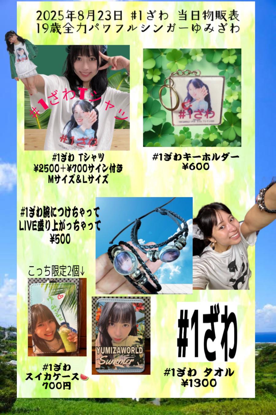 9月13.14 (土曜日&日曜 ‼️‼️ステージB‼️‼️ MCとライブ出演! エムシーとしては一日いるよ! 観覧無料 川口フェス ゆみざわ出演時間 ⏰10時15〜10時45 🏟️ 埼玉県川口 並木元町公園 ◦Bステージ 産業道路側の緑の中 前 9時40分〜10時まで 後 10時50分〜11時35分 物販 ①ご挨拶させてくださいCD ¥1980 ②#1ざわタオル ¥1000 ③#1ざわTシャツ ¥2500 サイン ④#1ざわカード入れ ¥500 ⑤#1ざわストラップ ¥1000 …(0)