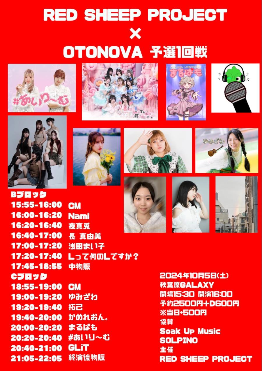 ゆみざわ情報 急遽!OTONOVA2025出演! RED SHEEP PROJECT × OTONOVA 予選1回戦 ■2024年10/5(土) ■ゆみざわは撮影可能📷⭕️ ■秋葉原GALAXY ■開場15:30 開演16:00 ■予約2500円+1D別(当日+500円) X@YUMIZAWORLD4338運営DM!または、 以下URLにて!↓ tiget.net/events/350266 来客特典で『金の投票券』を配ります投票ギフト『金の投票券』は一つのギフトで2組投票 【みんなへお願い(0)