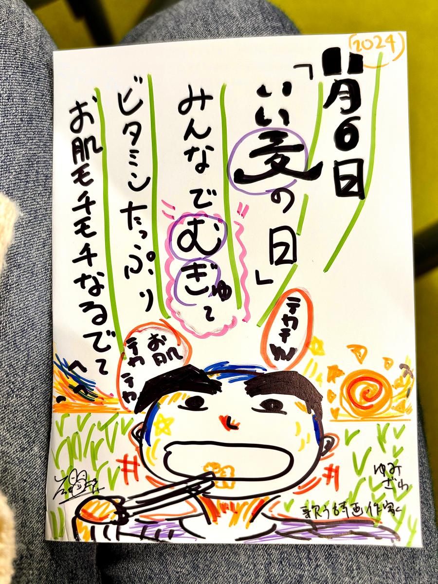 本日11月06(水)『いい麦の日』! 白米に麦米を入れて炊くと栄養倍増! 今日の主食は麦ご飯に決定🌾‼️ みんなは、玄米、五穀米、麦米 どのお米の種類が好き〜? #18歳歌う詩画作家ゆみざわ🖌️🖼️ #ゆみざわァートへようこそ No.52 #今日は何の日 #1日1ざわ(0)