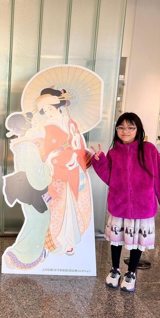 CHEERしてくれた人ありがとうございます! この前、パパと一緒に美術館にいきました🖼️ 「ときめき美人-培広庵コレクション名品展」っていうのをやっていました👩🦰 いつも読むマンガとは違う書きかただし、色白の人が多くて不思議な感じでした😳 帰りは別の美術館にいって、銅像と妹と記念撮影📷️(0)