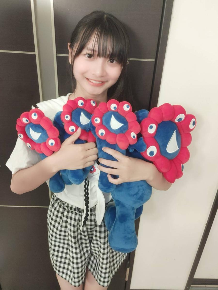 万博のくじでミャクミャクぬいぐるみ当たった❣️ 妹、弟、ママるん、花春のミャクミャク🥰 花春は2等だったよ😁大きくて嬉しい😚(4)