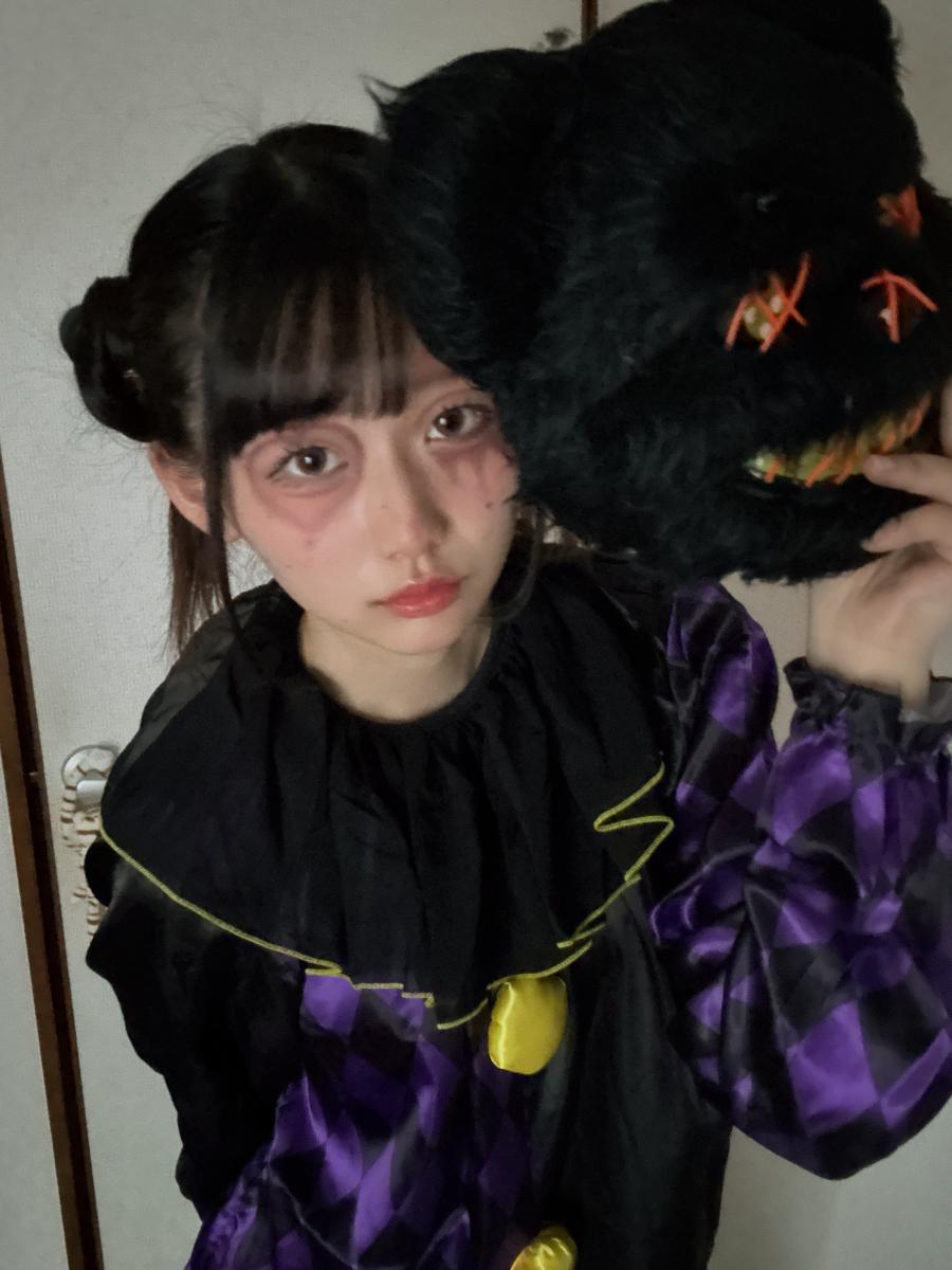 かに活Time⏱ みんなハロウィン何かしましたかっ?? 私は恋愛ピエロメイクしたよ🤡💓 当日に仮装買いに行ったらめっちゃ安く売っててラッキーᕷ*.° もう1つピエロの服あるんだけど写真撮ってなかった🥺マタイツカ 今年は3回仮装しましたꔛ クマの仮面これ実は光るんです🧸 ただ電池入れないといけなくて、、 手元に電池なかったから光らせれなかった🫣マタイツカヒカラセマス みんなのハロウィンエピソード教えてね🎃(2)