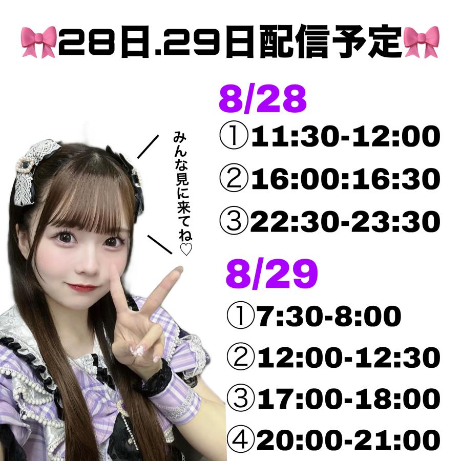 配信見に来てくれたみんなありがとう〜🎀 沢山CHEERもコメントも嬉しかった❕ 次は16:00-16:30です!待ってます! ------------------------------------------------- 決勝スタートダッシュ 8月27日(火)18:00〜8月29日(木)21:59 上位入賞で期間中に獲得したCHEER数に応じて ボーナスCHEERを獲得できます❕🎀 ------------------------------------------------- 決勝イベン(2)