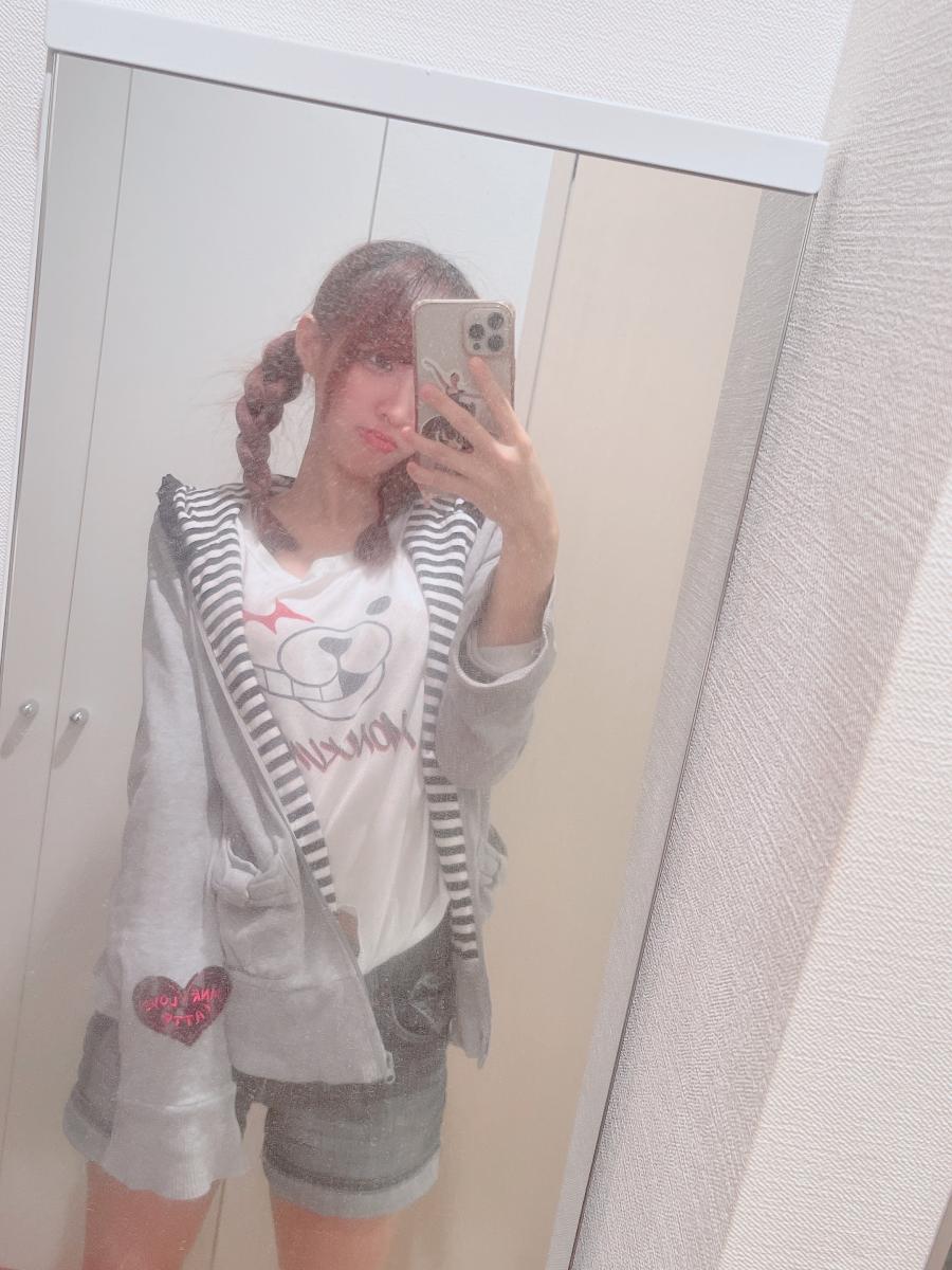 おはろりんりん!🤙太古のモノクマTシャツさんをアピールするあきなが😝(1)