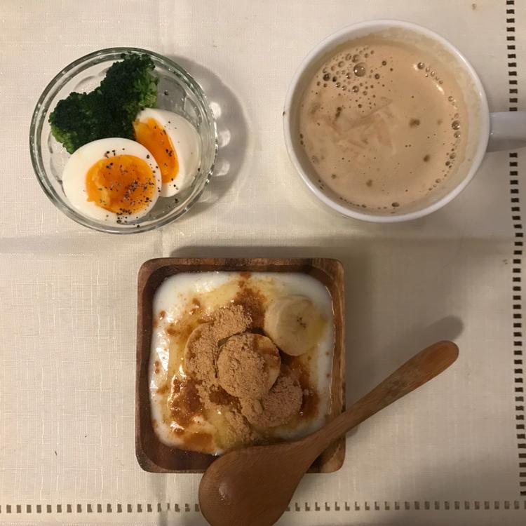 今日の朝ごはんレポート🥣 ブロッコリー🥦ゆでたまご🥚 ヨーグルト🐮 (プレーンにハチミツ🍯とばなな🍌ときな粉 かけるん、めっちゃ美味しいけん みんなもやってみてっ激推しっっ!!!) 豆乳ラテ ☕️ でしたっっ🤤 みなさんおはようございますっ! このヨーグルトの食べ方、 ほんまに美味しいけん、 みんなにやってみてほしいっ!!! 夏はねあいりバナナきって 冷凍庫に常にいれとるん、 夏は凍らせたバナナ🍌たべるのっ 甘くなっておいしいんよっっ!! あとね、ゆでたまごは いつも電子ケトル(0)