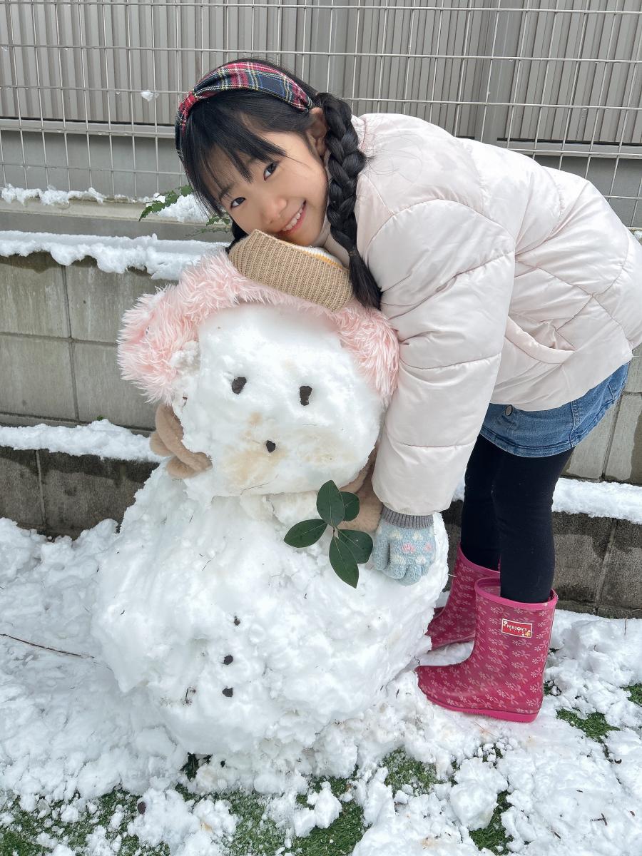 こんばん🌱 今日は雪降った❄️イェイ😊めっちゃ綺麗だった🤩雪だるまちゃんも作ったよん♪ ふーちゃんのマフラーやぼうし、耳当てで暖かくしてあげています❣️口のまわりが汚れているのはミートソース食べたからなの🍝(嘘です🤥)(5)