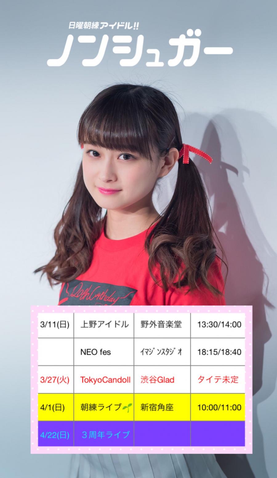 ノンシュガー☕れなてん🎀 3/4の朝練ライブ、 4/1の朝練ライブ、 4/22の3周年ライブ。 予定は少ないけど とっても大事で とっても楽しみなものばっかりです☺︎︎(0)