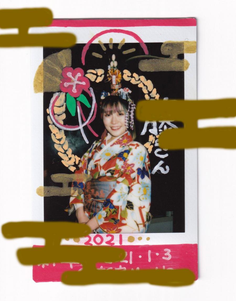 宿題チェキ作業工程動画を初🌈公開! 正月のおめでたいチェキに仕上がったよ〜🎍✌️ (宿題なのでお客さんのお名前が入ってます)(1