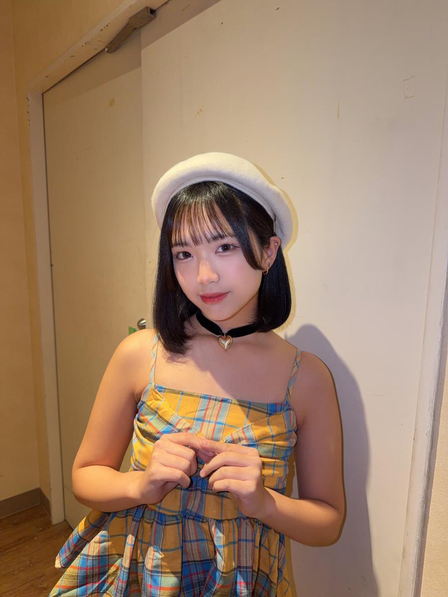 \2305/ やほー(ˆ . ̫ . )"今日もライブありがとうございました✨️ 今日はカラコンがいつもよりちっちゃかったからナチュラルな感じでしたー.ᐟ‪(メイクはほぼいつもと変えてないけど) 黄色衣装初めて着た.ᐟ‪やっぱり白はソワソワしますね(笑)これブーツも白なんです🤍これからまた沢山着ていくと思うのでぜひまた見に来てくださいね~👀🌼 特にベレー帽も白色なのが違和感でした(⸝⸝¯ᵕ¯⸝⸝)白色だからキノコみたい.ᐟ‪.ᐟ‪黒髪に対象的な色やから逆に可愛い😽✨️ 実は明日もまだ着(2