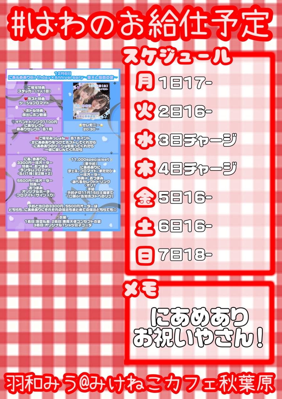 #はわのお給仕予定 遅くなりましたが今週分です! にあめありのお祝い屋さんしよー!(0