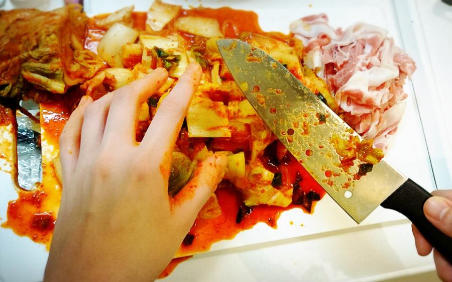この前ヤチさんとみんなに振る舞うキムチチヂミ作ったときの…🔪震え 翌日キムチのスメルが染み込んだ手でギター弾いたよ🎸 キムチはカットしてあるものがオススメ🇰🇷(0