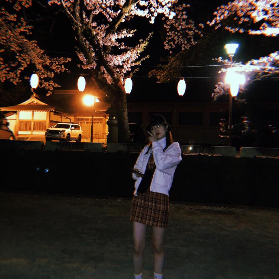 . 夜桜🌸 . ライトアップされてて いい感じでした〜〜 . この日のootdです⭐️(0